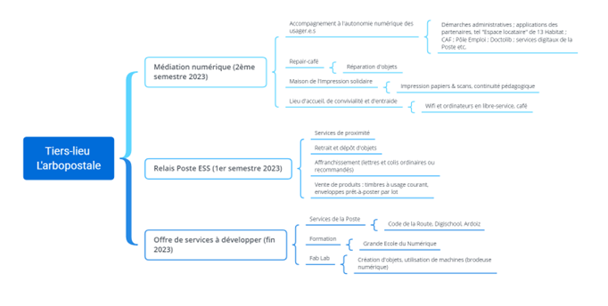 La mise en place d’un Relais Poste ESS et d’une offre de médiation numérique*. Cette dernière s’étant révélée comme la plus indispensable des propositions parmi celles ayant émergé des ateliers thématiques.